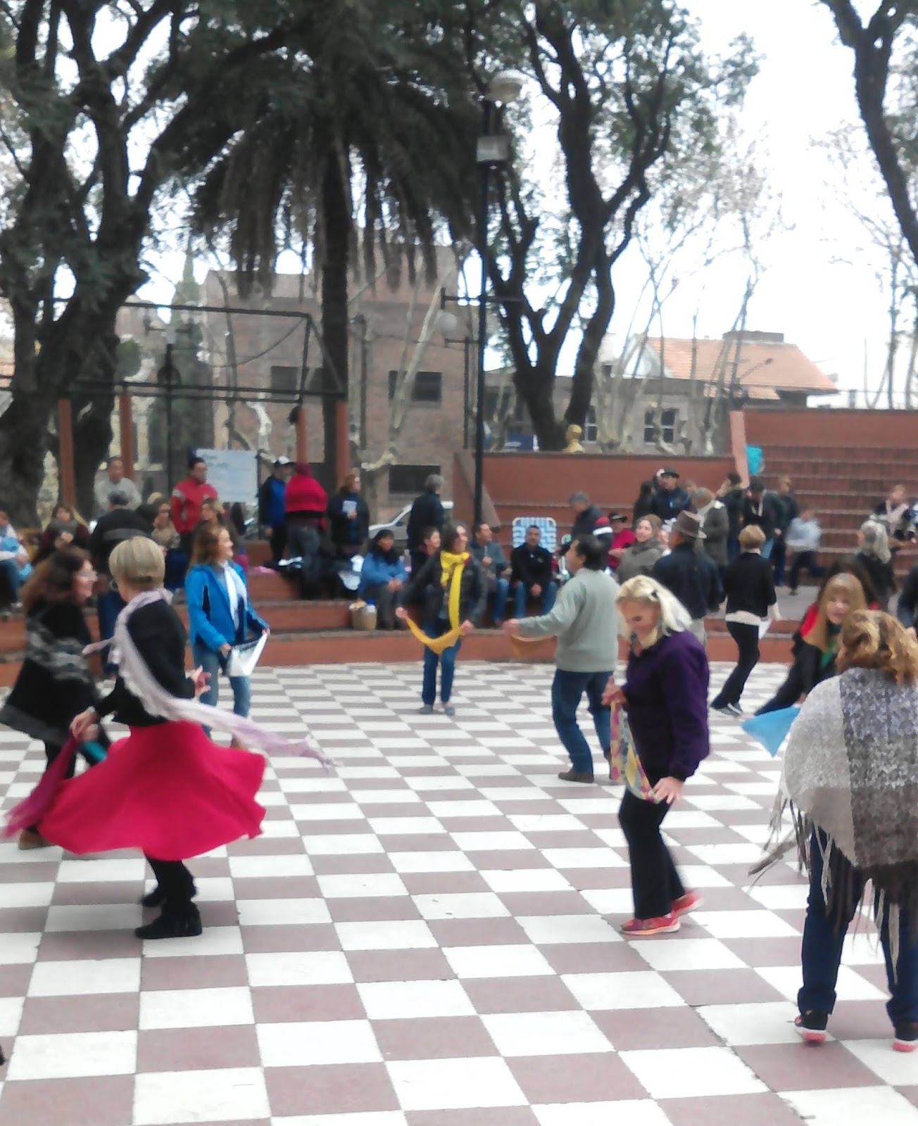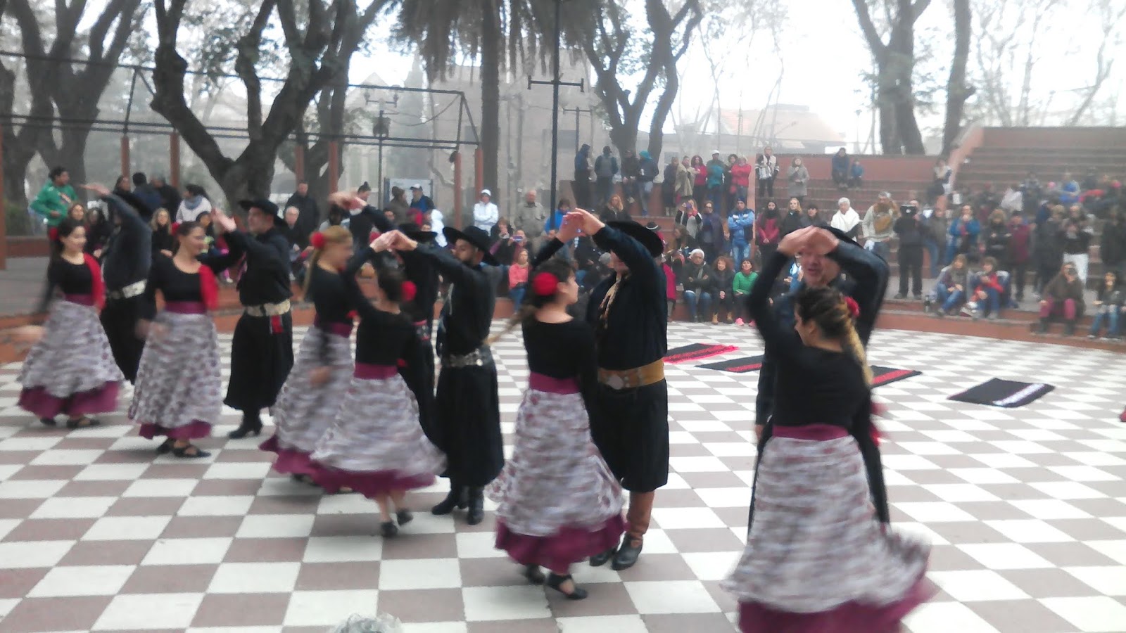 Primera peña del invierno en un día atípico, ya que la eliminación de la selección argentina en el mundial de fútbol produjo desazón para algunos, bronca y dolor para otros; el clima que se anunciaba sin frío y con sol, también fue contrario a los pronósticos, ya que a las 14,30 una incipiente neblina hizo bajar la temperatura y escondió al sol. Así comenzamos, apenas unos minutos pasadas las 15 hs con el encuentro mensual en la Plaza 9 de Julio; la clase de danzas folklóricas a cargo de la Prof. MARTA IBORRA comenzó a sumar participantes que alegremente revoleaban pañuelos al compás de la CUECA NORTEÑA; el primer artista en vivo, fue el grupo de DAVID VELIZ, joven productor de espectáculos, autor, compositor e intérprete de Florida, Pdo. de Vte. López, siguió una muestra de destreza y fantasías con boleadoras a cargo del bailarín ARIEL “el tano” RIZZITANO, luego, mientras la neblina se iba haciendo más densa, se presentó por primera vez en la plaza el jovencísimo cantor de Los Polvorines SANTIAGO VILLALBA, que con apenas 17 años tiene muy definido su repertorio y la fuerza en su canto, eligiendo temas de temática social como otrora lo hicieron Mercedes Sosa y Horacio Guarany entre otros; siguió el baile a cargo de la agrupación DENUJUYCO en una puesta briosa y colorida; el cierre de la tarde estuvo en la voz de COCO FERNANDEZ artista con muchos años de carrera desarrollada en destacadísimos grupos como Los Cuatro Grillos, Los del Fondo de la Legua y Alma Salteña, quien en este momento está presentando su primer disco solista titulado “Una leyenda”; llegaba el final de la peña con la ya clásica y tan esperada tanda de danzas tradicionales (esta vez: huella, arungüita, firmeza, jota cordobesa, remedio atamisqueño, zamba alegre, lorencita, jota criolla, celosa, huayra muyoj y gato). La plaza cubierta totalmente de niebla nos presentaba a los ojos un espectáculo surrealista; el público seguía bailando sin importarle que la niebla meona mojara su cuerpo y su ropa porque el folklore nacional estaba presente con la fuerza que solo la identidad y la propia tierra pueden dar. A las 18,35 la despedida bajando el imaginario telón e invitando para el próximo encuentro que será el sábado 28 de julio a las 15 hs. Agradecemos como siempre la presencia de tantos amigos, artistas y profesores, instituciones y medios de prensa.