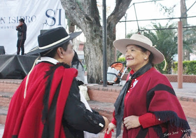 Plaza 9 de Julio, Córdoba y Necochea, Martínez. La peña del 29 de junio suspendida por lluvia, se realizó el sábado 6 de julio. La fría y soleada tarde se fue poblando de ponchos colorados para homenajear al Gral. Don Martín Miguel de Guemes, la emoción, los aplausos, el baile, la música y el canto entibiaron los cuerpos y corazones de todos los presentes. GERMAN SALAZAR (voz y guitarra) , ROBERTO PELOC (voz, guitarra y director del grupo Cebil), KOKI FLORES (violinista) y ANGEL CERPA (bombisto) fueron los artistas que nos entregaron durante tres horas las más hermosas zambas salteñas, y las briosas chacareras, también el pin pín, cuecas y otros ritmos norteños para deleite de los bailarines. Las agrupaciones que participaron y trajeron las carpas salteñas a Martínez, fueron: AGRUPACION DE RESIDENTES NORTEÑOS GAUCHOS DE PURA CEPA, EL PATIO DE TERESA y LOS AMIGOS PEÑEROS. En la clase de danzas folklóricas argentinas a cargo de la profesora Marta Iborra repasamos el guardamonte norteño y aprendimos el guardamonte cuyano. Gracias a la Sra.María Claro, a los artistas, al público, a los colegas de prensa, a los profesores e instituciones y a José Vázquez por las hermosas fotografías. Los esperamos el 27 de julio a las 15 hs para vivir otra tarde con todo el folklore argentino.
